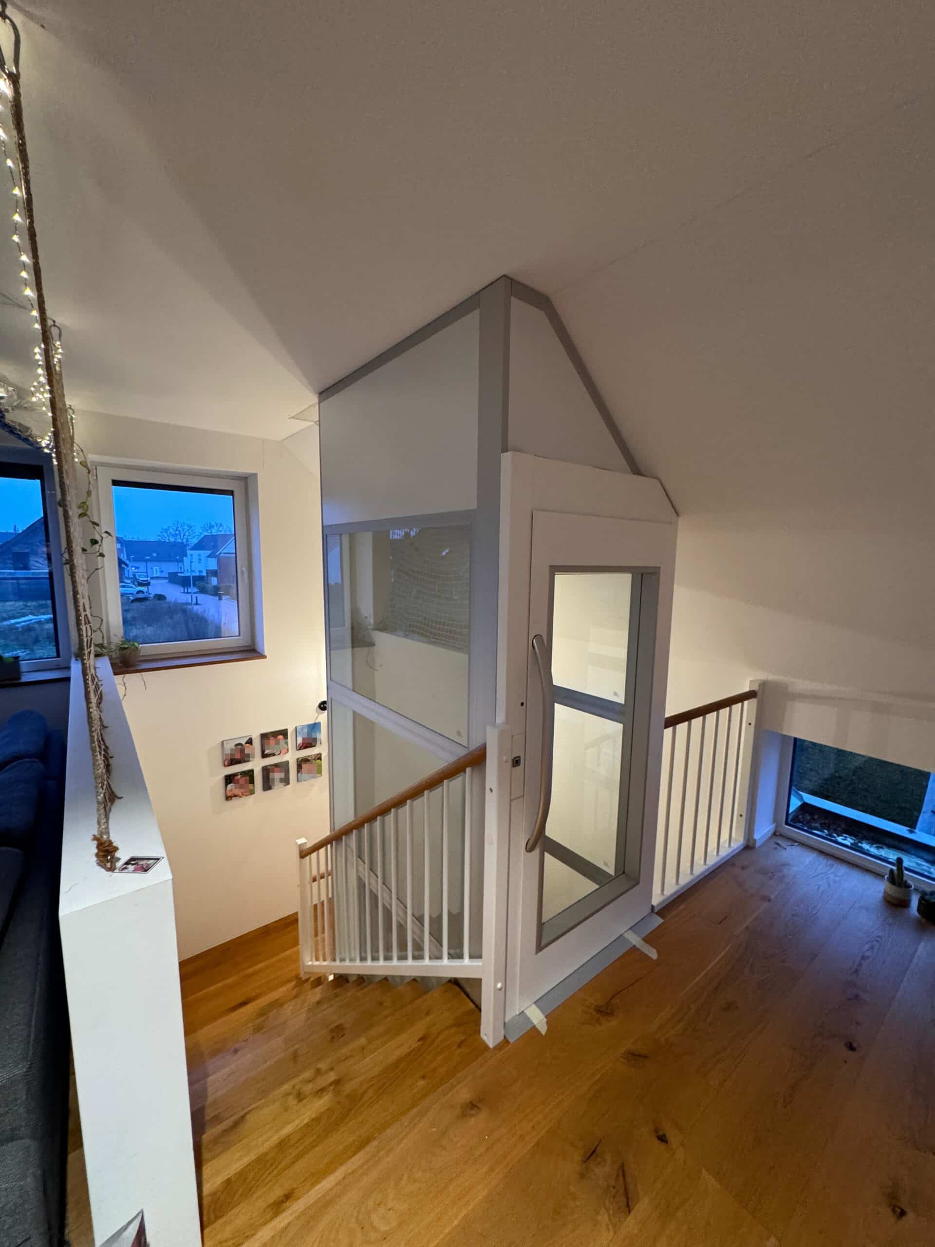 Für eine Familie aus dem Münsterland sollte der Neubau mit einem rollstuhlgerechten Lift ausgestattet werden. Dieses kompakte Modell mit einer Plattformgröße von 1100 x 930 mm, zwei Haltestellen und großzügiger Verglasung ist ein echter Hingucker! Sicherheitsleisten und ein elektrischer Notablass, der auch bei Stromausfall funktioniert, sorgen für eine sichere Fahrt von einer Etage in die nächste.