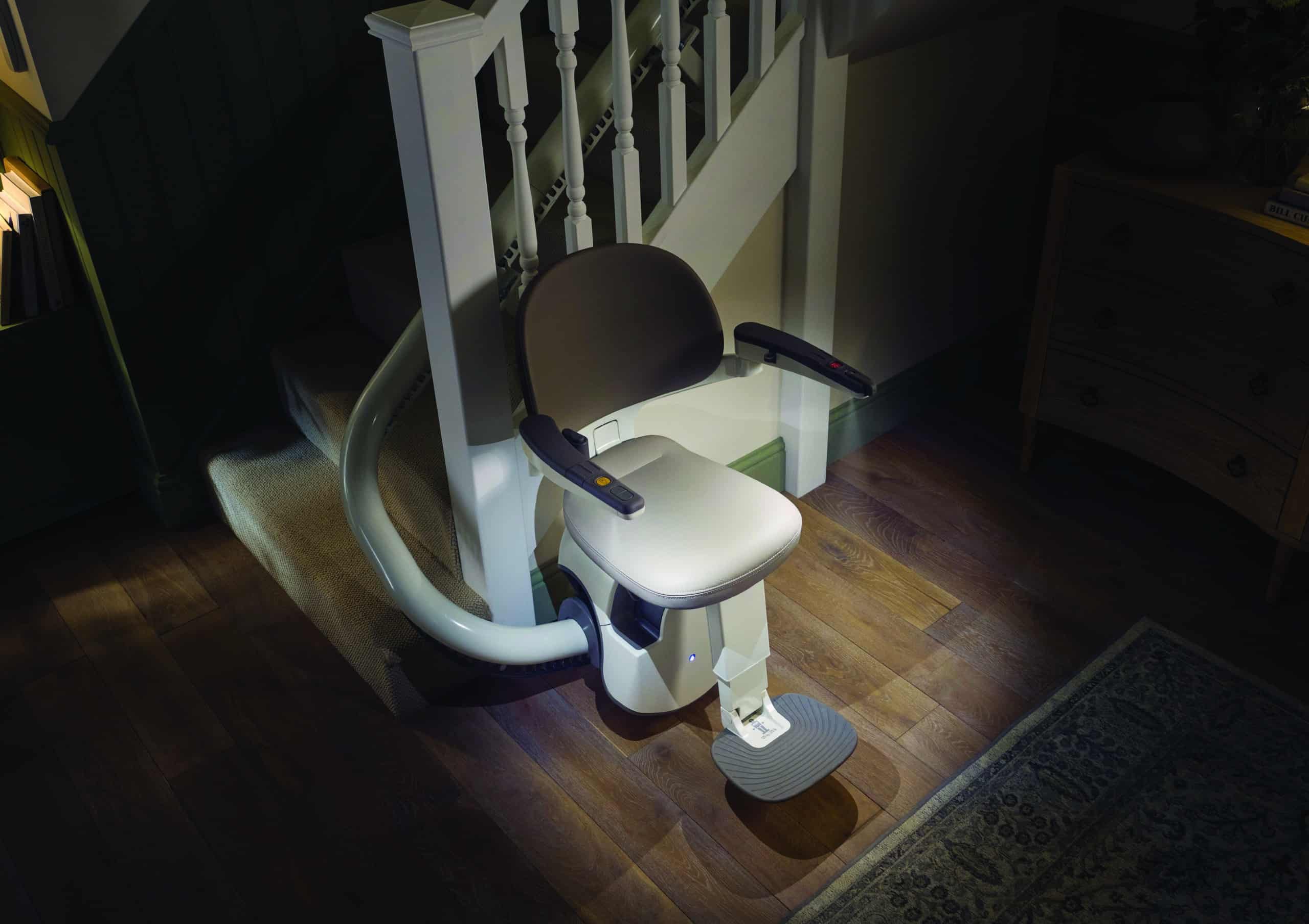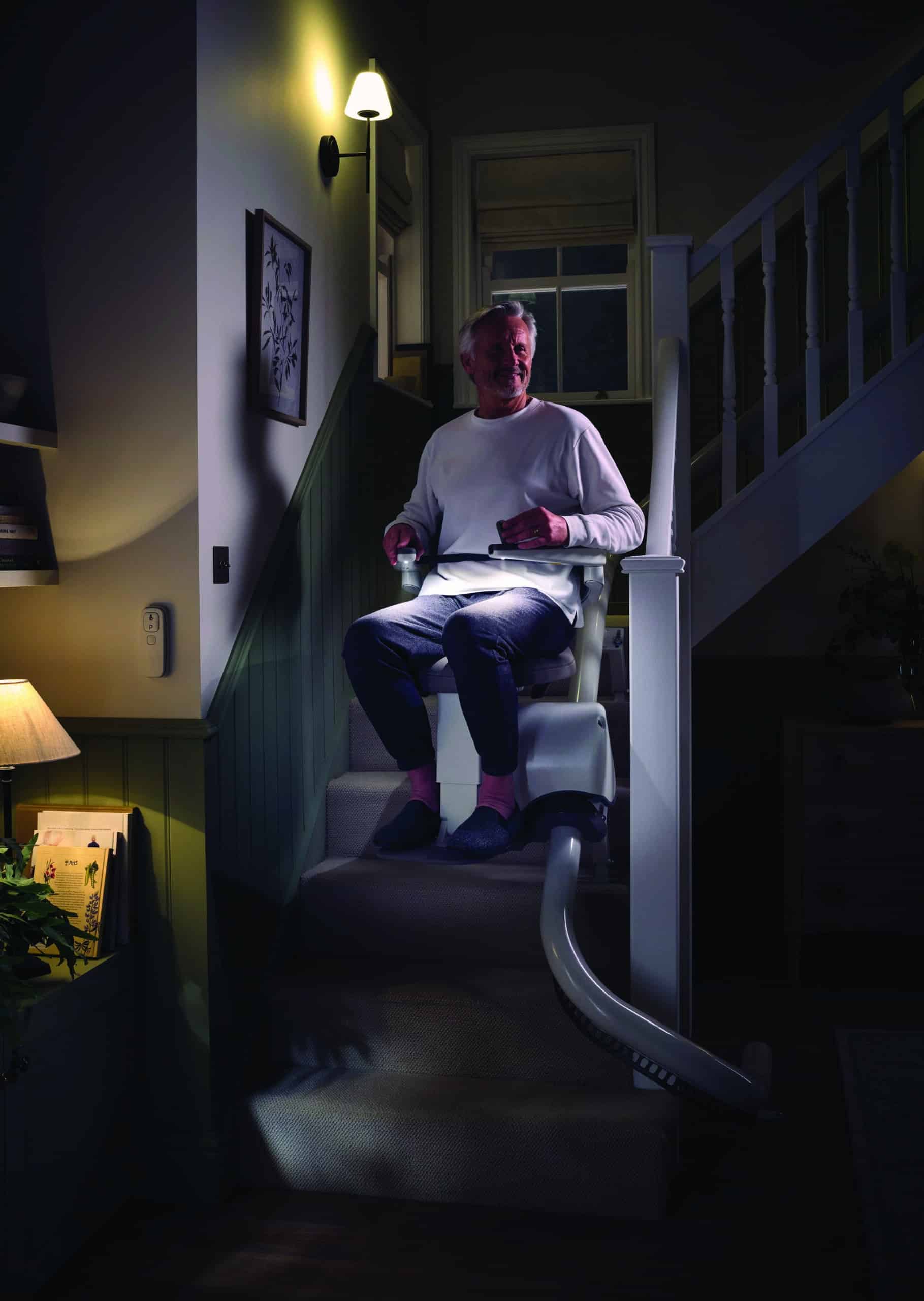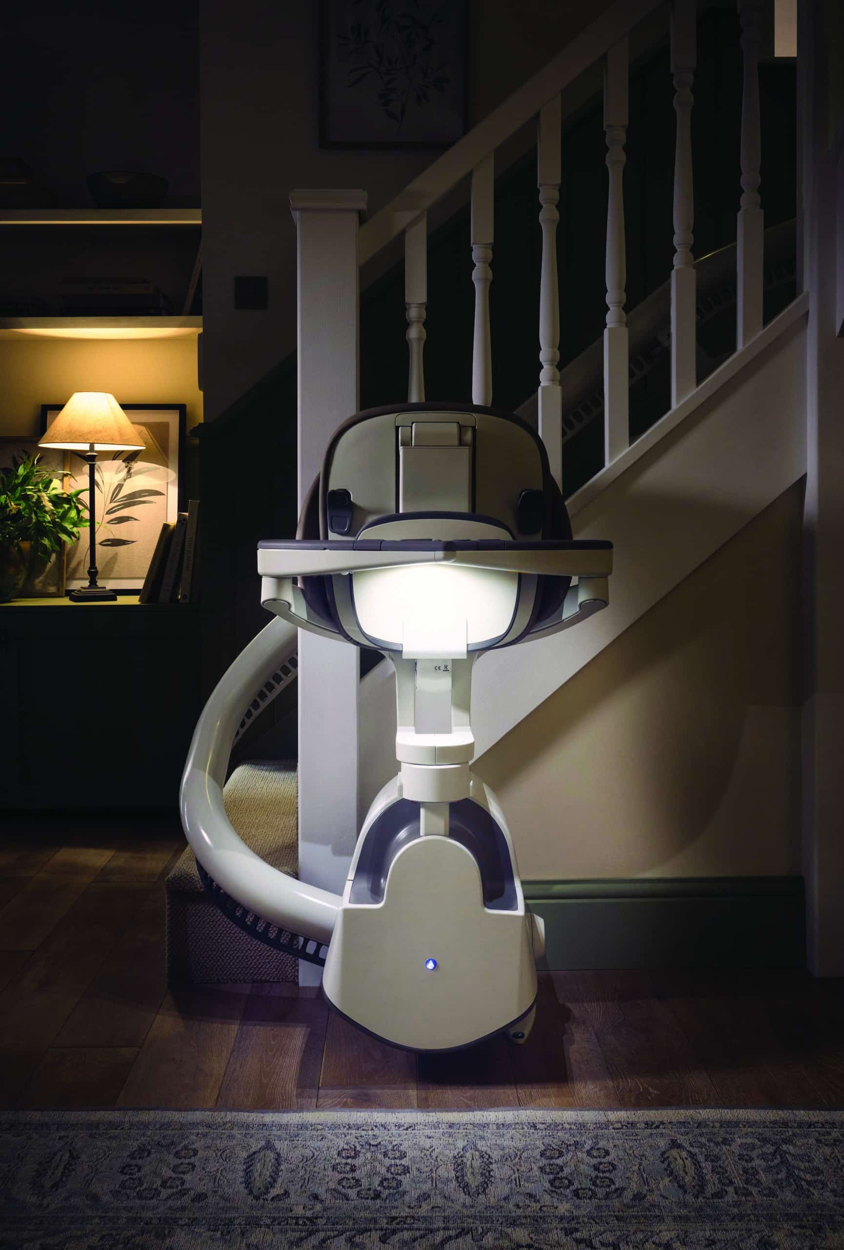 Die Licht-Assistenz besteht aus zwei integrierten Beleuchtungselementen, die die Sichtbarkeit während der gesamten Benutzung des Treppenlifts verbessern.