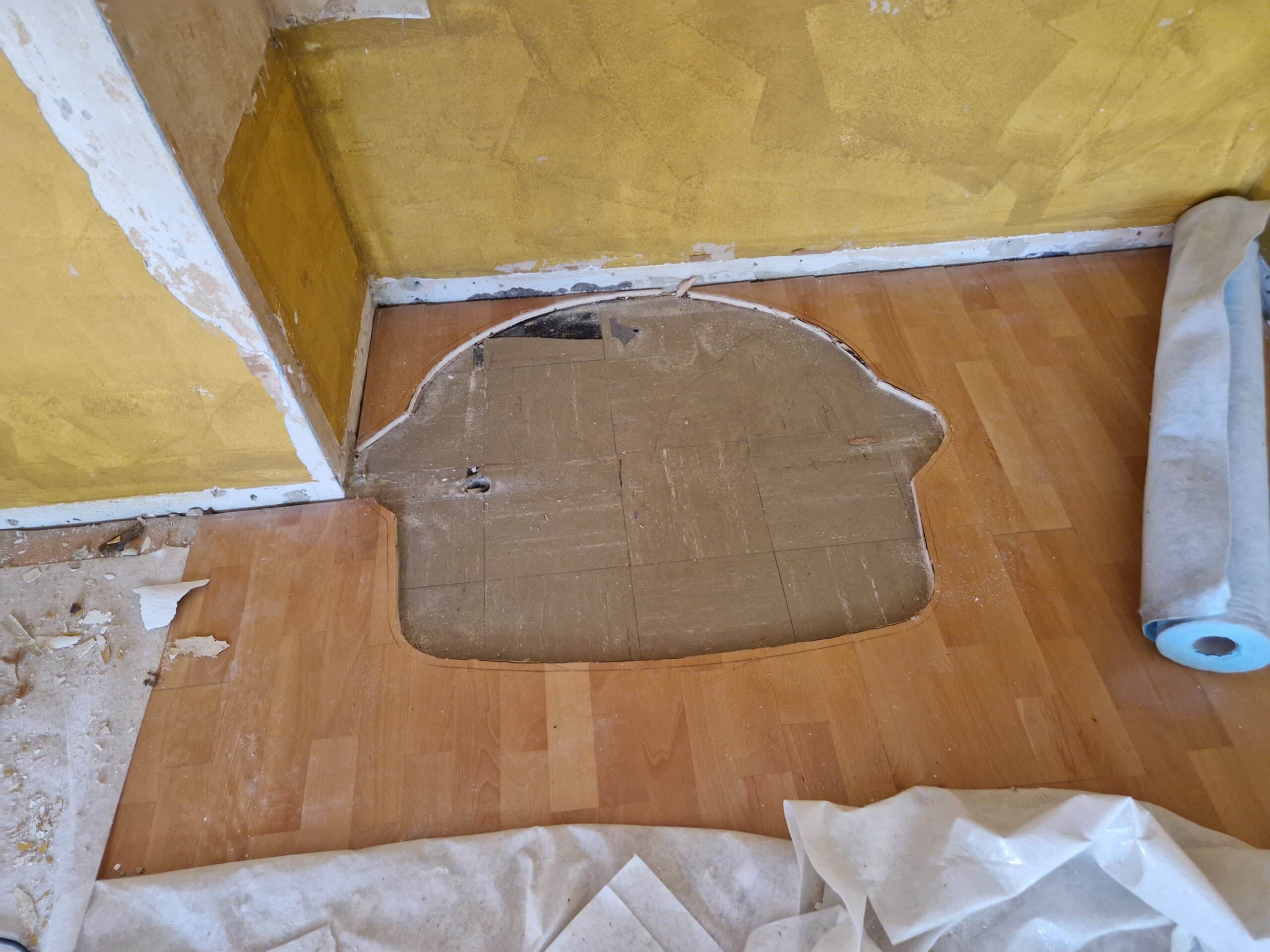 - Schutz umliegender Wände und Böden durch Folien, Vlies und Sperrholz