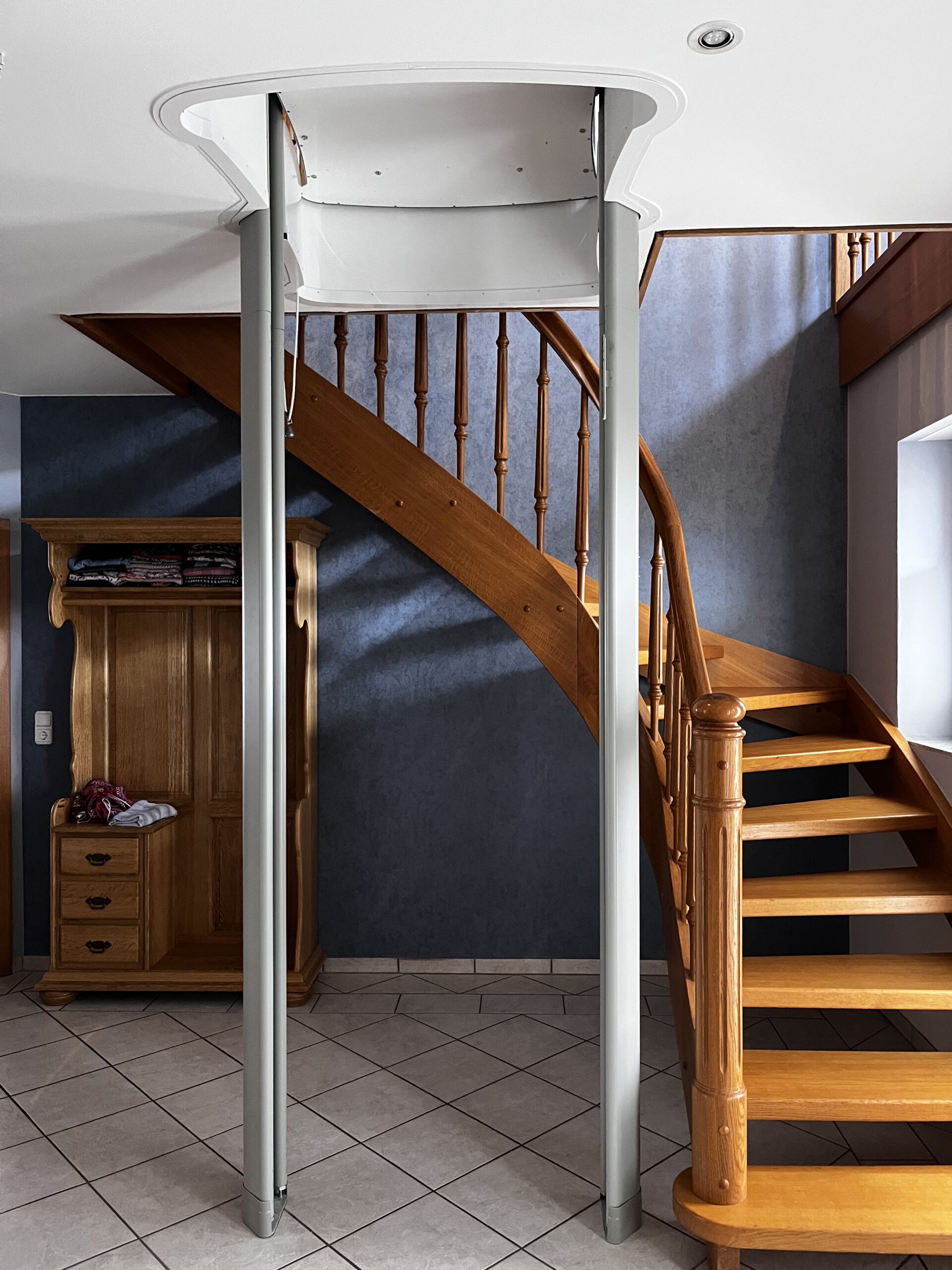In einer Gemeinde im Landkreis Cloppenburg suchte ein Kunde eine dauerhafte, barrierefreie Lösung für seine Frau, die die Treppen im Haus nicht mehr sicher bewältigen konnte. Die Herausforderung bestand darin, zwei Haltestellen bzw. eine komplette Etage mühelos zu überwinden – ideal geeignet für einen modernen Homelift.